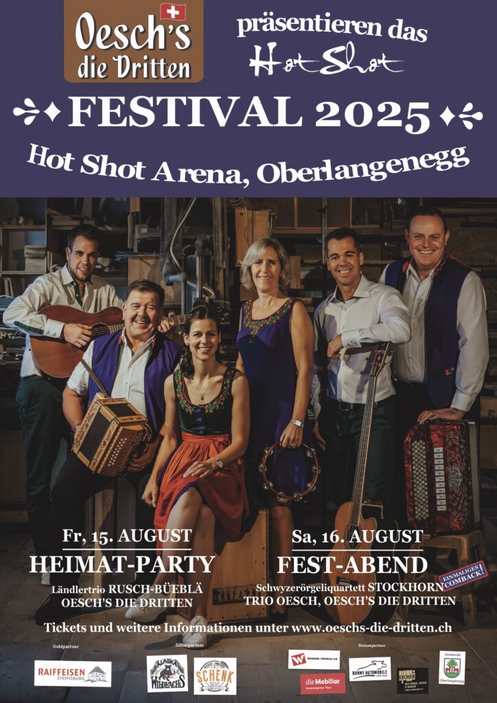 Der grösste Event im Jahr bildet bestimmt unser Hot Shot-Festival mit Oesch’s die Dritten. Für diesen Event orientieren Sie sich bitte bei uns direkt oder den aufgelegten Flyern.